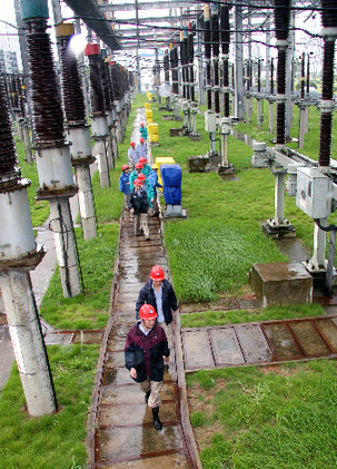 8月8日凌晨5點35分,浙能紹興濱海熱電公司巡檢人員已自覺將巡查間隔時間縮短,換上雨衣、拿上點溫槍、掛上電筒,開始“巡查之旅”。從12.9米層到6.3米層再到0米層,然后走出汽機房,前往循泵房,雨滴在狂風(fēng)的助推下有如一粒粒小石子打在臉上,調(diào)皮的雨水順著雨衣隨著風(fēng)向“灑”在褲腿上、鞋上。一圈下來已將近半個小時。突然“砰”地一聲,一塊玻璃從房頂?shù)袅讼聛,巡檢人員馬上拿出手機,聯(lián)系值長,檢查周邊設(shè)備,匯報情況。5分鐘后,值長帶領(lǐng)兩名值班人員拿著塑料膜來到狀況地點,為帶電設(shè)備穿上“雨衣”。 “蘇拉”、“?苯吁喽,臺州發(fā)電廠各部門,尤其是燃料碼頭異常繁忙,8月3日,在防“蘇拉”二級應(yīng)急響應(yīng)措施解除后,檢修職工加班加點將全部卸煤機、皮帶機等設(shè)備恢復(fù)到運行狀態(tài),燃料分場職工48小時輪流作戰(zhàn)搶卸煤,終于在8月5日23時卸完41943噸燃煤,保證了煤場庫存。8月6日一早,燃灰分場檢修職工就奔赴燃料碼頭,對所有卸煤機進行防風(fēng)纜繩加固,對900多米長的皮帶進行包扎和防雨水措施,對碼頭的各種電機進行拆除。雖然任務(wù)繁重,但檢修職工們密切配合,有序推進,在8月6日午后,已全部執(zhí)行完畢防汛防臺一級響應(yīng)措施。