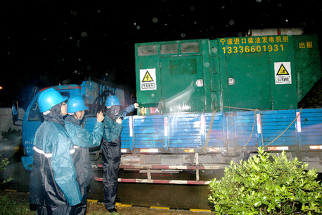 8月7日晚上,浙能天然氣運行公司一線抗臺人員檢查柴油發(fā)電機情況。 毛中文攝 攝