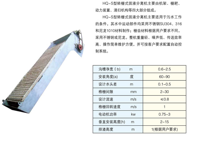 玉樹HQ-S型轉(zhuǎn)柵式固液分離機(jī)